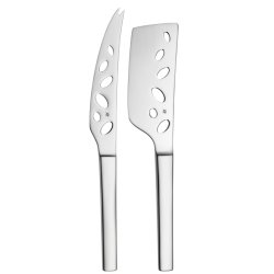 Original juego de 2 piezas para cortar queso de WMF, en acero inoxidable, con un divertido diseño llamado "Vela", que imita a los agujeros de los característicos quesos holandeses.