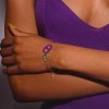 En el centro dispone de dos eslabones con diseño calabrote aplatados. El más grande, esmaltado en violeta; el más pequeño, completamente engastado de circonitas rosada sobre plata ennegrecida por rutenio.